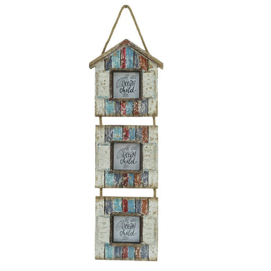 Handcrafted 3-Photo Frame Hanging Beach Houses 22x3.5x78cm