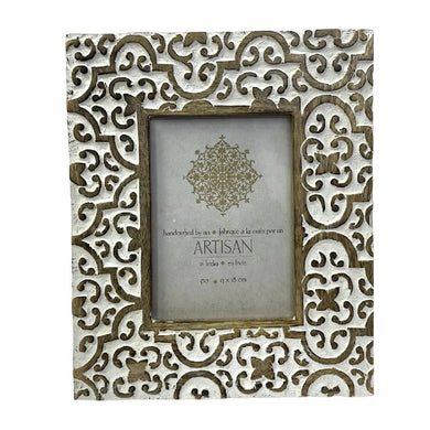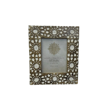 Handcrafted 5x7" Mango Wood 'Quatrefoil' Photoframe 24x1.5x29cm