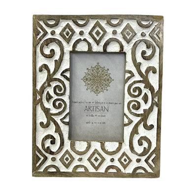 Handcrafted 4x6" Mango Wood 'Shapes' Photoframe 21x1.5x25cm