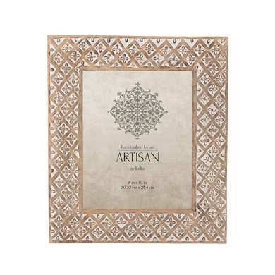 Handcrafted 8x10" Mango Wood 'Diamond Flower' Photoframe 31x1.5x36cm