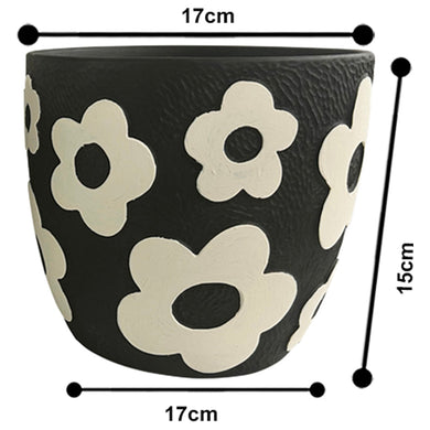 Set/2 Assorted Monochrome Flower Planters w/Hole + Plug 17x17x15.5cm