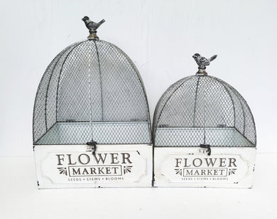 Set/2 Nested 'Flower Market' Cloche Cages 32x21x46/27x17x36cm