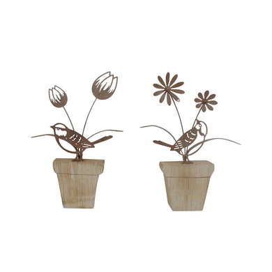 Set/2 Asst Birds & Flowers on Wood Ledge 14x2.5x21.5/13x2.5x23cm